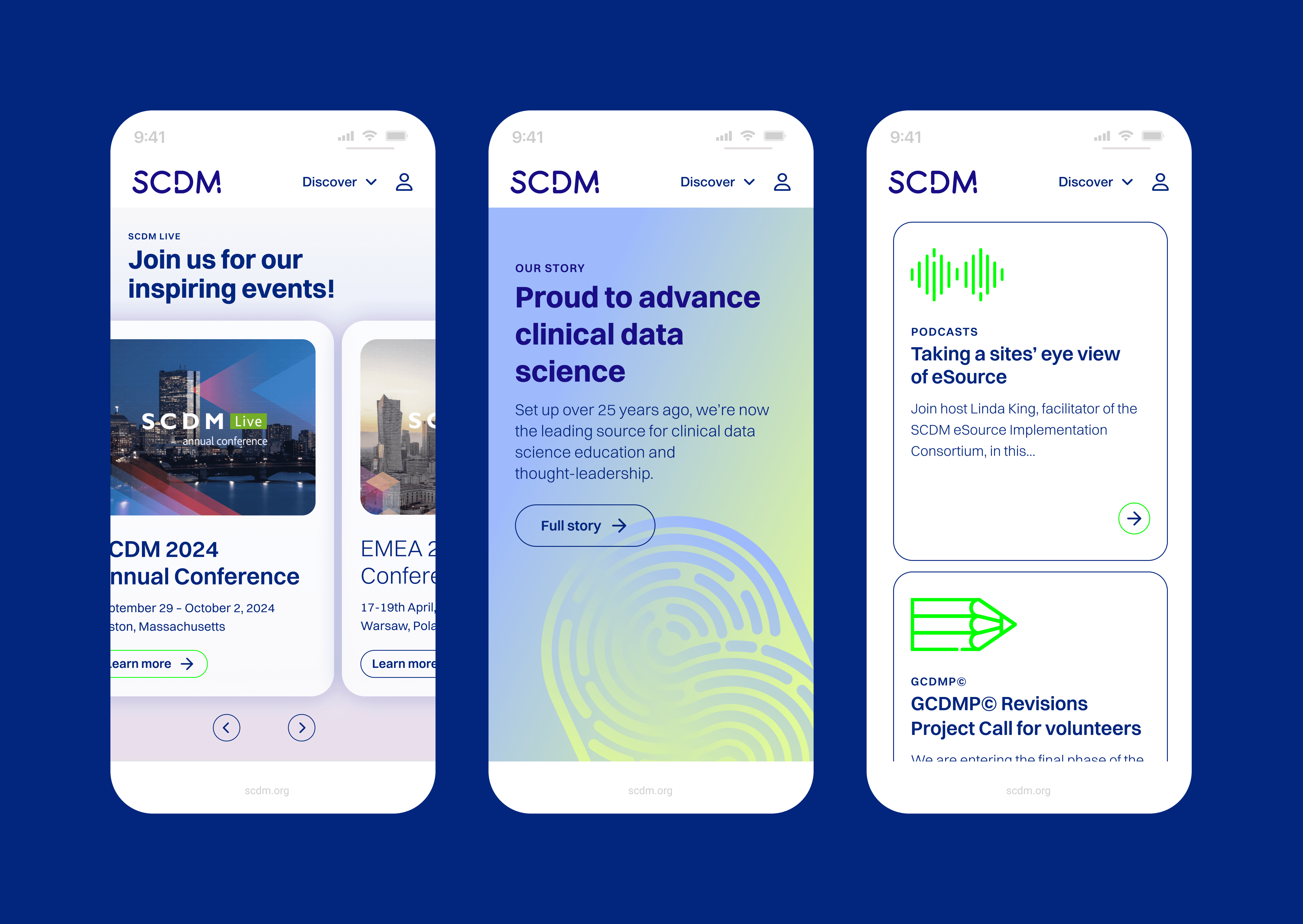 At the heart of SCDM is community. A human centric organisation created for the development of individual's careers and a platform for sharing advancements in clinical data science. We created a visual language that combines science and human.