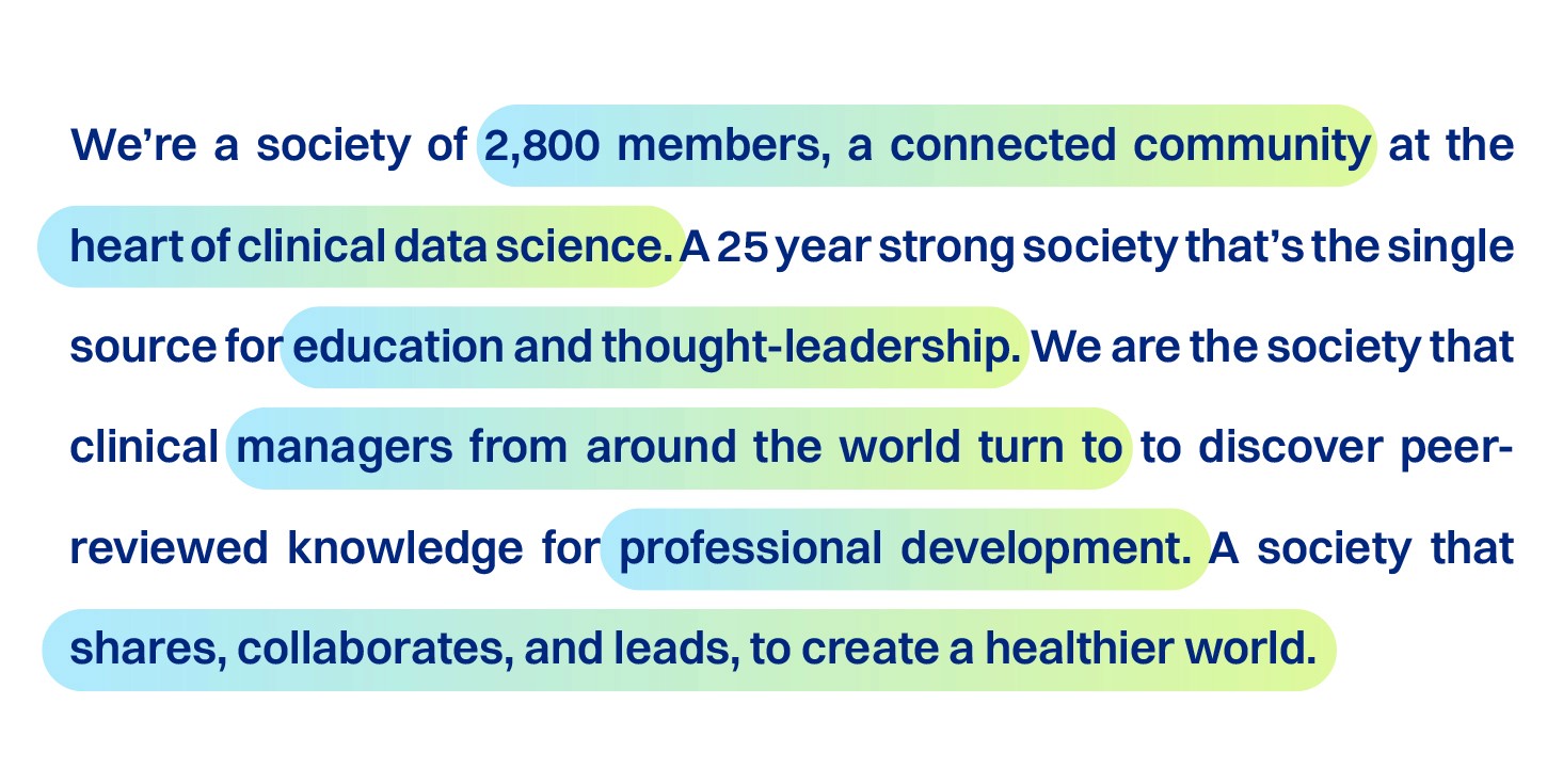 With multiple facets to the society, the challenge was to create a brand that would encapsulate the enthusiasm and energy and solidify the authority they have in the field of Clinical Data Science.
